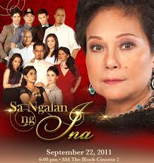 Sa Ngalan ng Ina (Filipino: "In the Name of the Mother") is a Filipino drama series by TV5. This is the first offering of TV5 Mini Serye which will set to air only for a month. It aired on October 3 after Wil Time Bigtime. Elena Deogracias (Nora Aunor) is a second wife of a politician. While running for governor of their province, her husband, Armando Deogracias (Bembol Roco) was assassinated by a grenade explosion. This leads for the Party to replace Amang. They decided for Elena to be his substitute and won as governor of their province. |